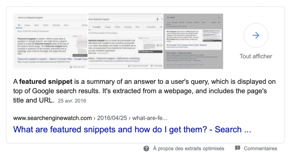 That way, you might make it to featured snippet. The new holy grail of SEO. This highlight box shows up at the top of the results page and is designed to offer an instant click-free solution to your query. Like this one when I typed in “what is a featured snippet?”